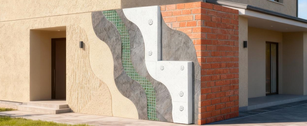 Навантаження на систему визначаються вітровим тиском, тепловим перекосом, циклічним зволоженням і усадковими деформаціями основи. Для кожної будівлі формується індивідуальна комбінація утеплювача та фінішного шару з урахуванням розрахункового термічного опору, кліматичної зони, типу основи (цегла, бетон, газобетон), режиму експлуатації та вимог пожежної безпеки. Концепція зовнішнього утеплення дозволяє працювати з масивом стіни як з інерційним тепловим акумулятором за зміщеної точки роси, що підвищує стабільність конструктивної вологості та знижує ризик деградації кладочного шва і бетону від чергування замерзання та відтавання.